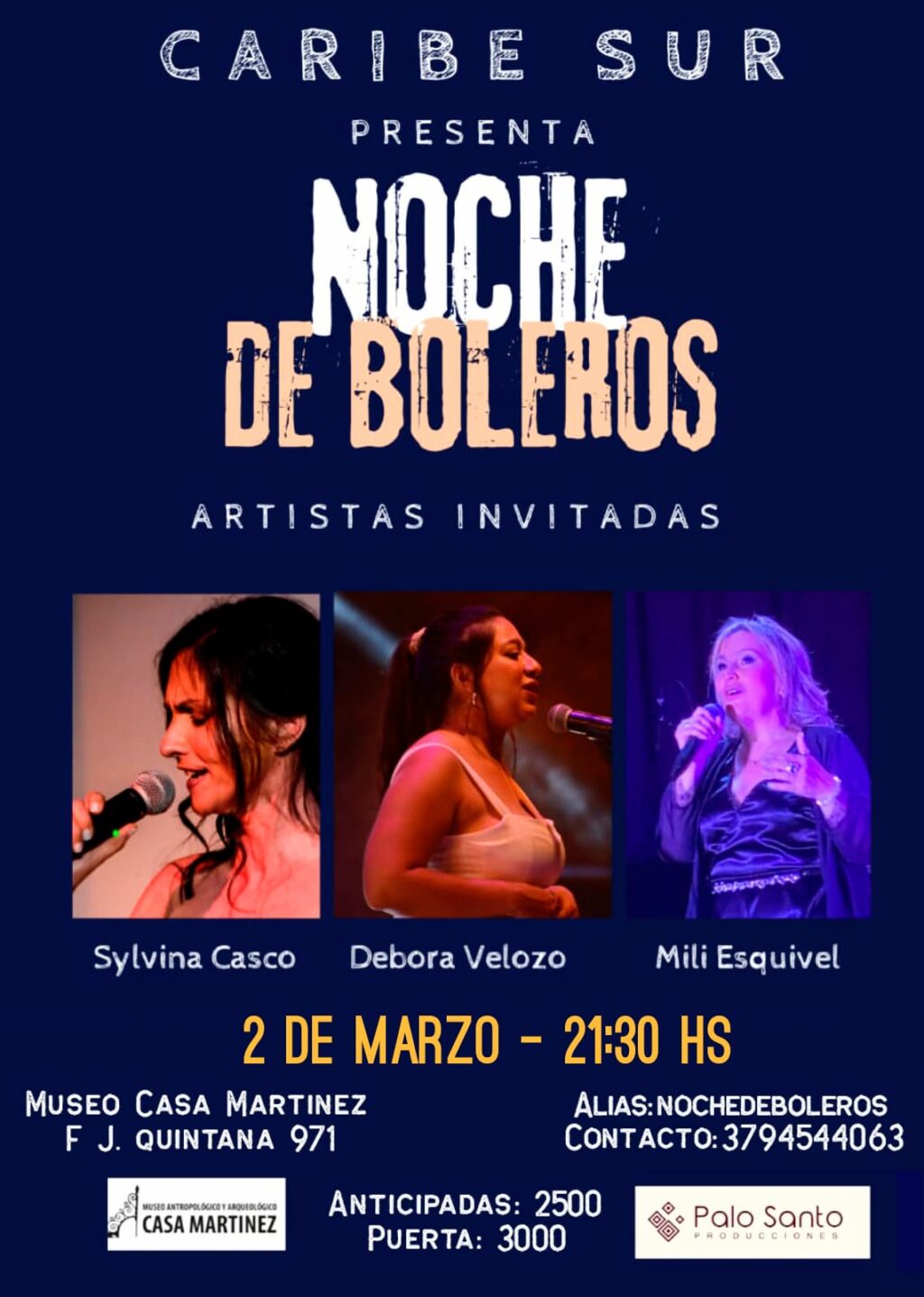 Para adquirir entradas anticipadas, comunicarse al 379-4544063, anticipadas 2.500 pesos, en puerta 3.000 pesos, a través de Mercado Pago, al alias «nochedeboleros».